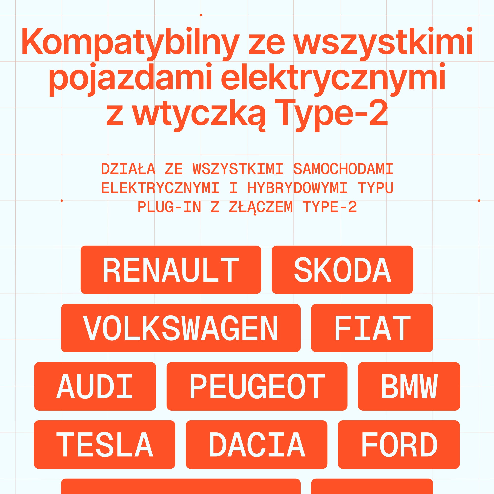 This charger is compatible with all EV (Electric Vehicles) and Plug-in Hybrid vehicles equipped with a Type 2 socket.Examples of Compatible Vehicles: